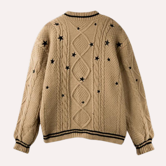 Absolutely love this soft, cute and stunning cardigan! It is my new favorite accessory to wear. I love that it doesn’t hang super low like some cardigans. It’s slightly baggy in the shoulders, but in a wonderful, comfortable way. Thankful for this company and their wonderful work! Paired with the matching beanie and it’s the best fall outfit.