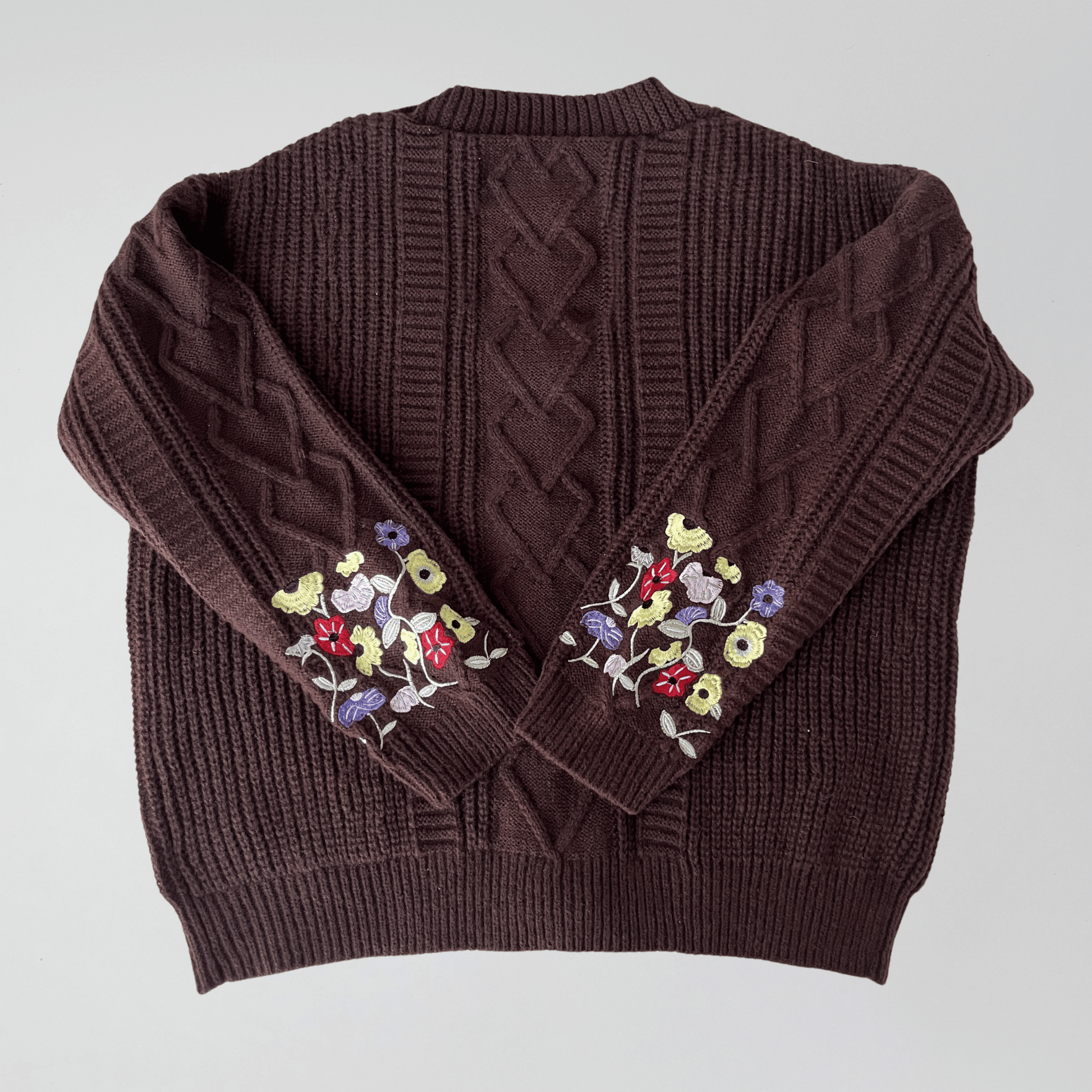 This brown Eras Cardigan features thick, soft material, a stunning Eras patch, shiny embroidered flowers, and the Lover house patch inspired by the iconic Eras Tour Piano Version.