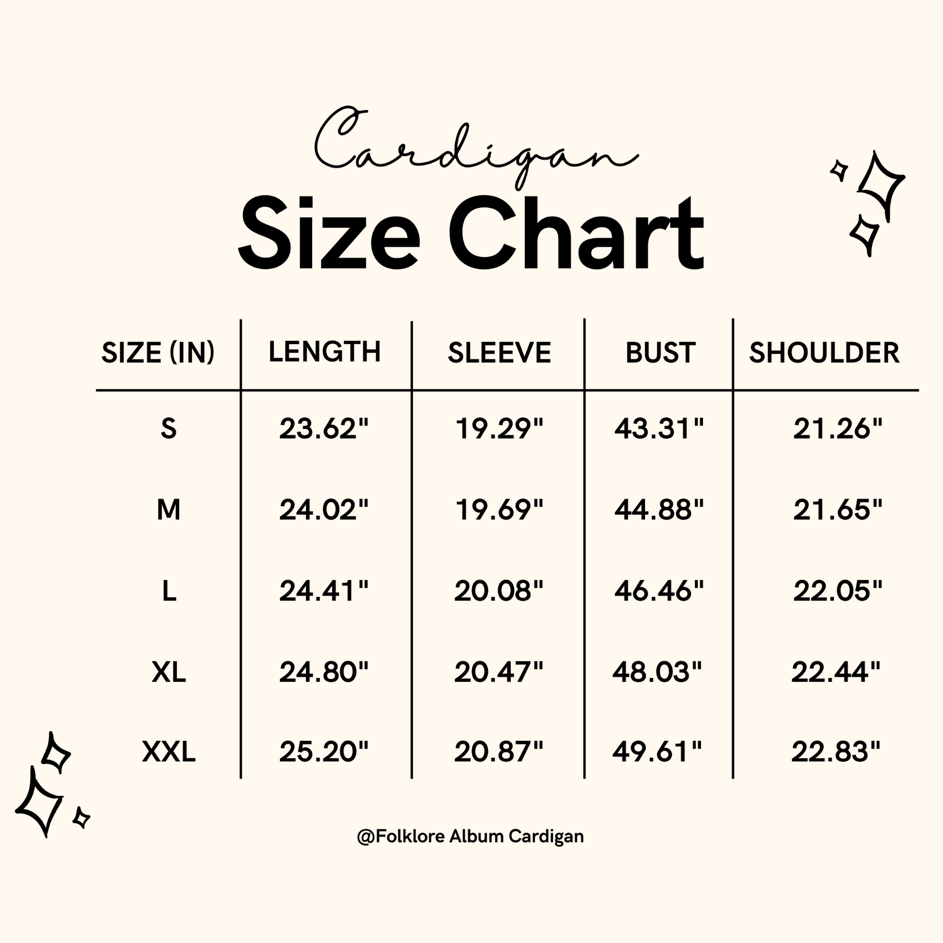 Please refer to the size chart, the sizes are approximately based on bust, and sleeve, length. This cardigan is an oversized fit. Thank you!