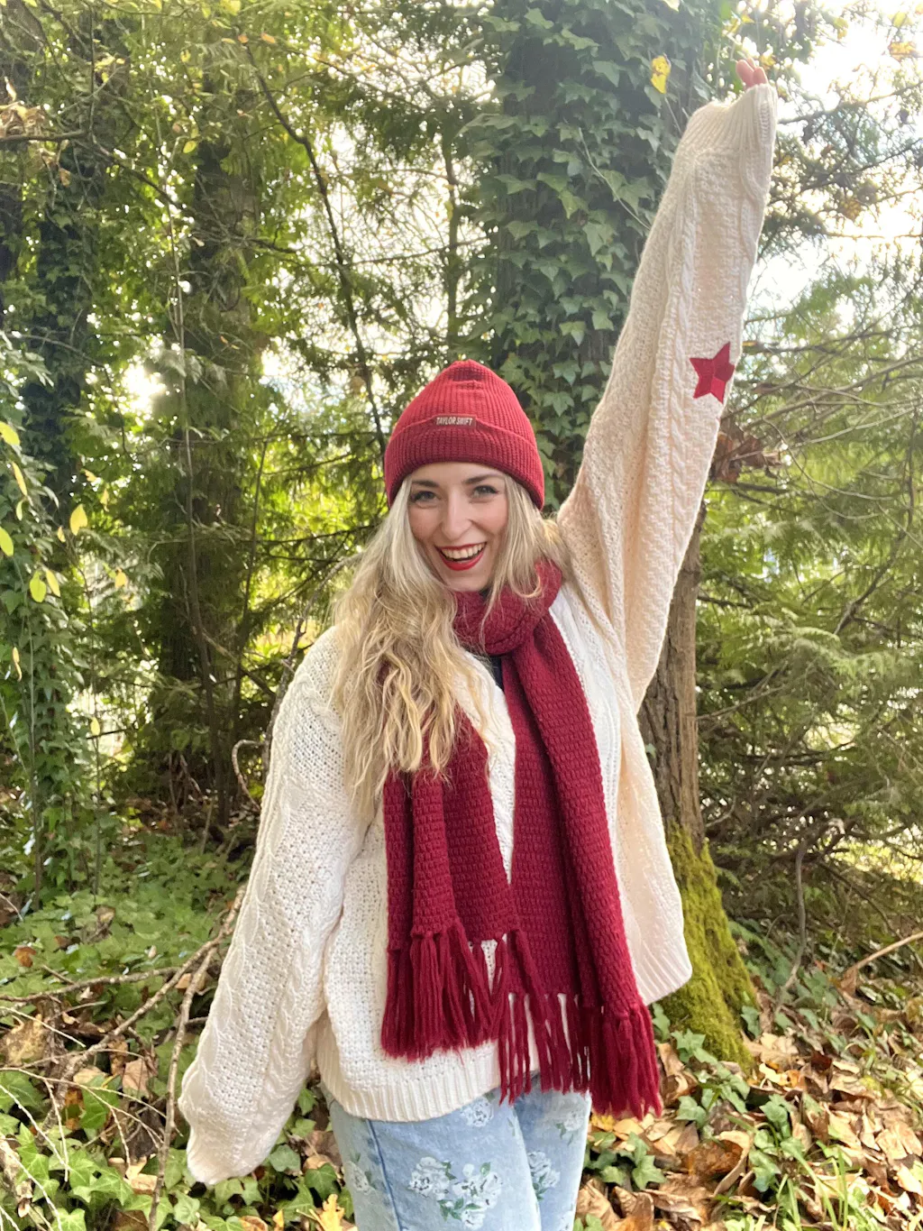 Absolutely love this soft, cute and stunning cardigan! It is my new favorite accessory to wear. I love that it doesn’t hang super low like some cardigans. It’s slightly baggy in the shoulders, but in a wonderful, comfortable way. Thankful for this company and their wonderful work! Paired with the matching beanie and it’s the best fall outfit.