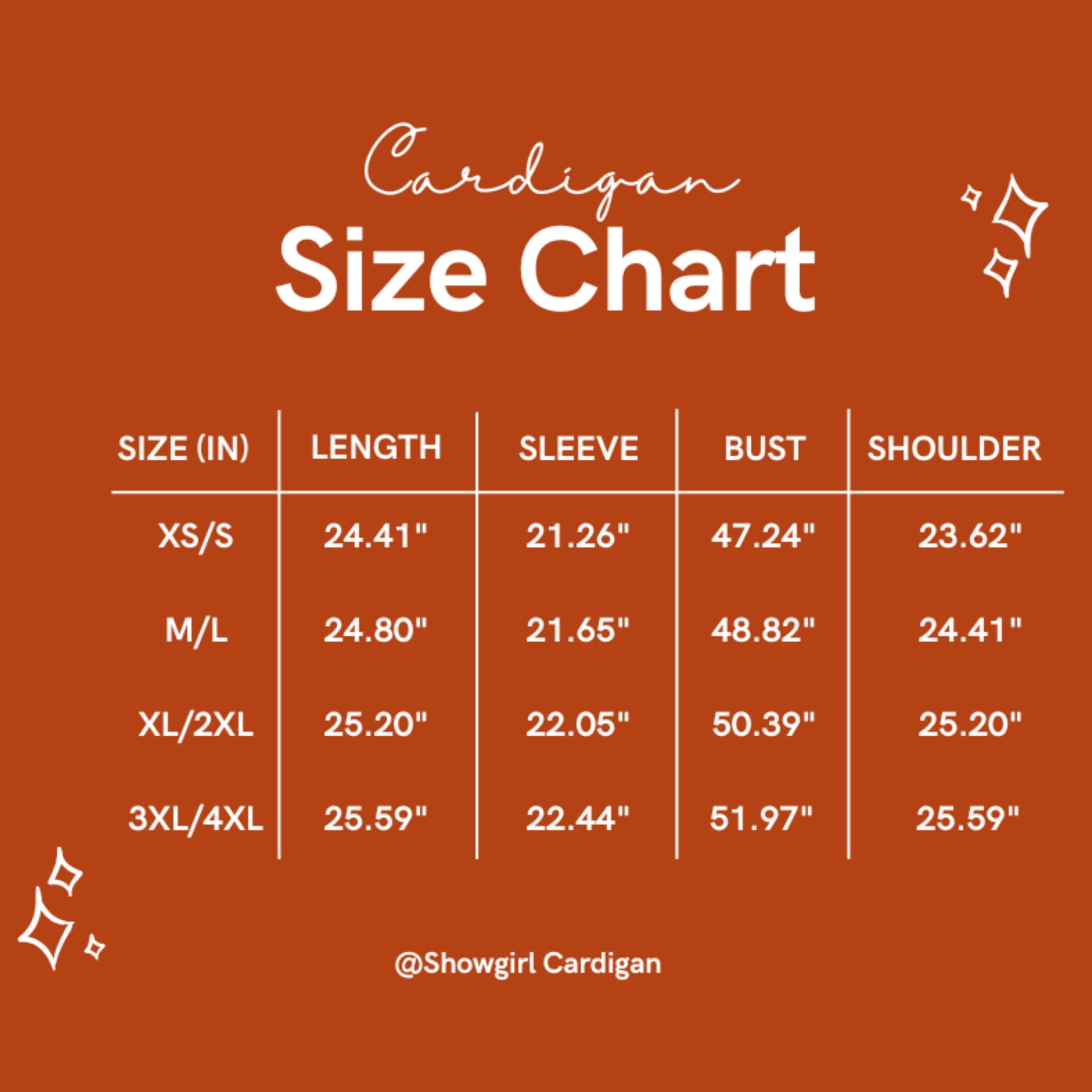 Show your inner Swifties with this and stylish Showgirl cardigan, adorned with a charming blend of soft beige and orange, delicate embroidered stars, inviting you to sparkle with confidence and shine in the spotlight of any showgirl moment.
